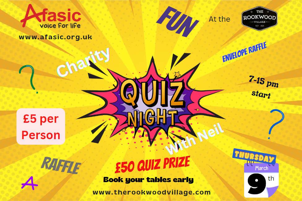 Afasic Quiz March 2023 Our very first Afasic quiz took place on the 9th March at the Rookwood village pub on Cann Hall Rd, Leytonstone E11. What an amazing night we had. Twelve teams [...]